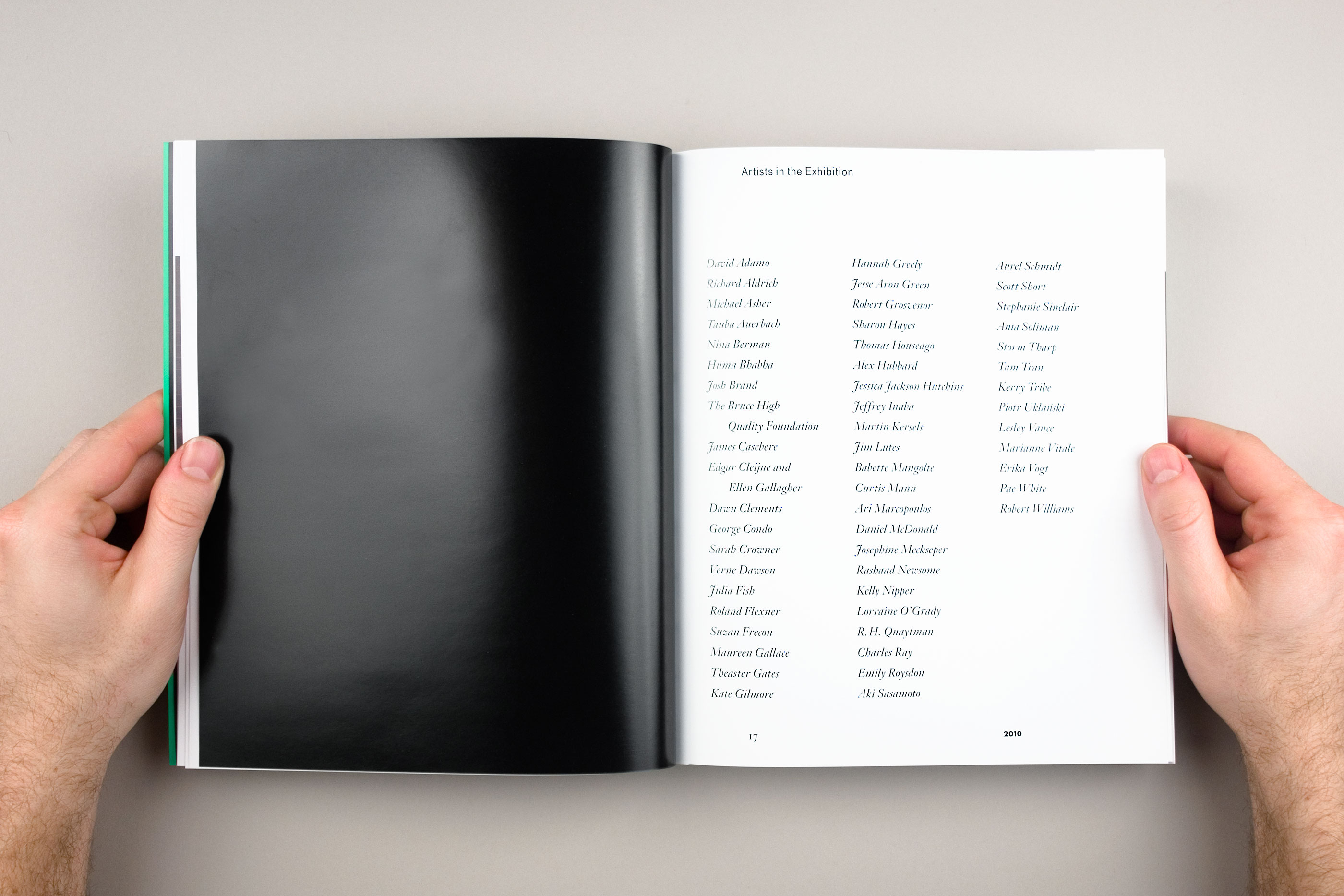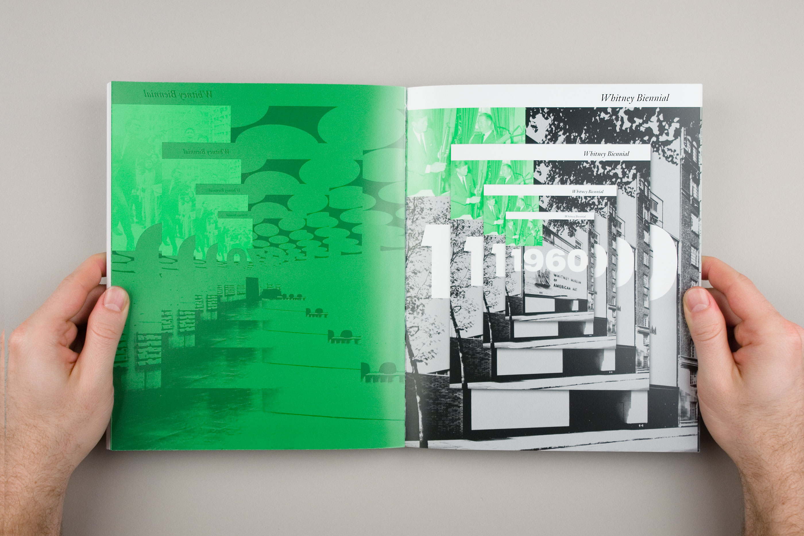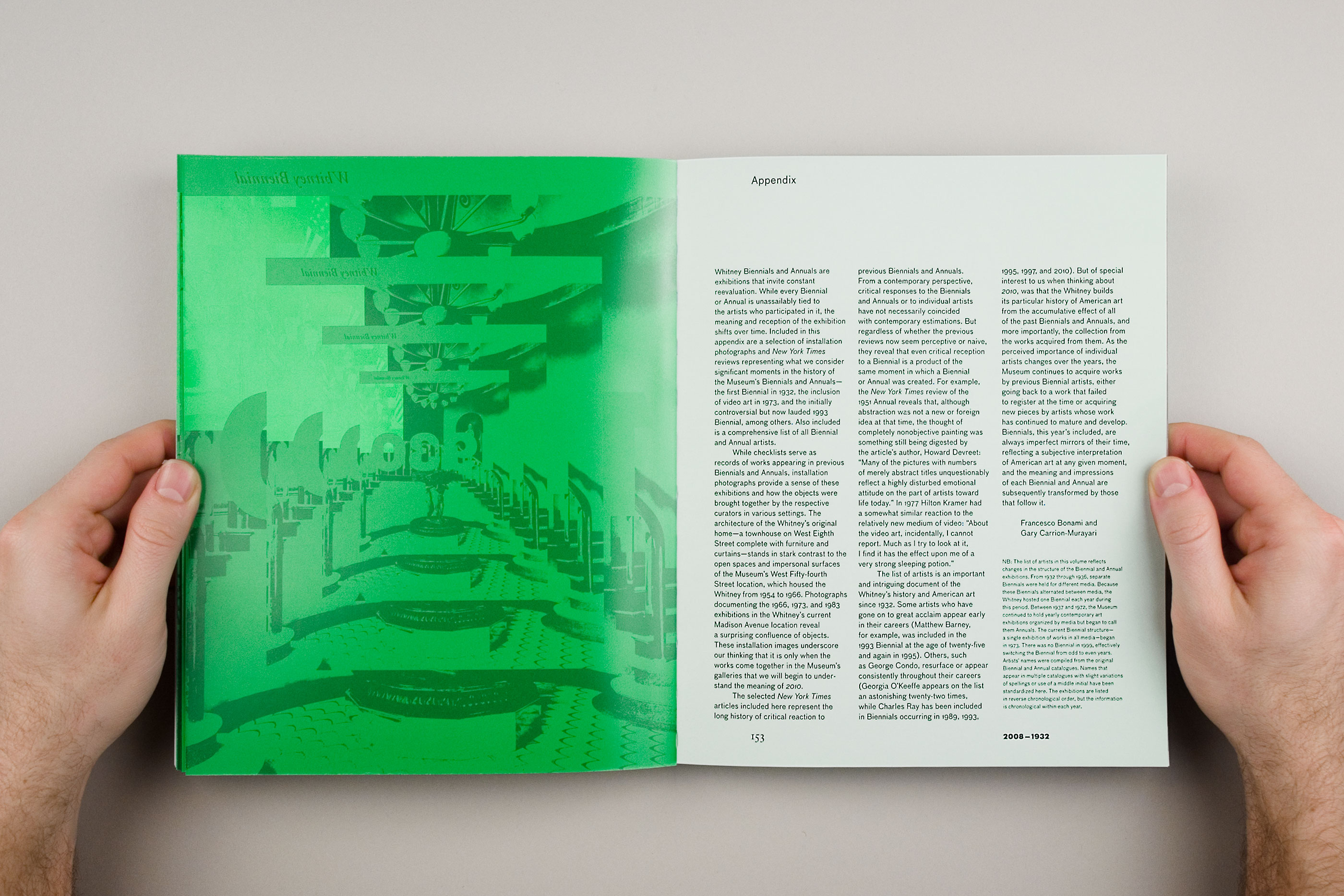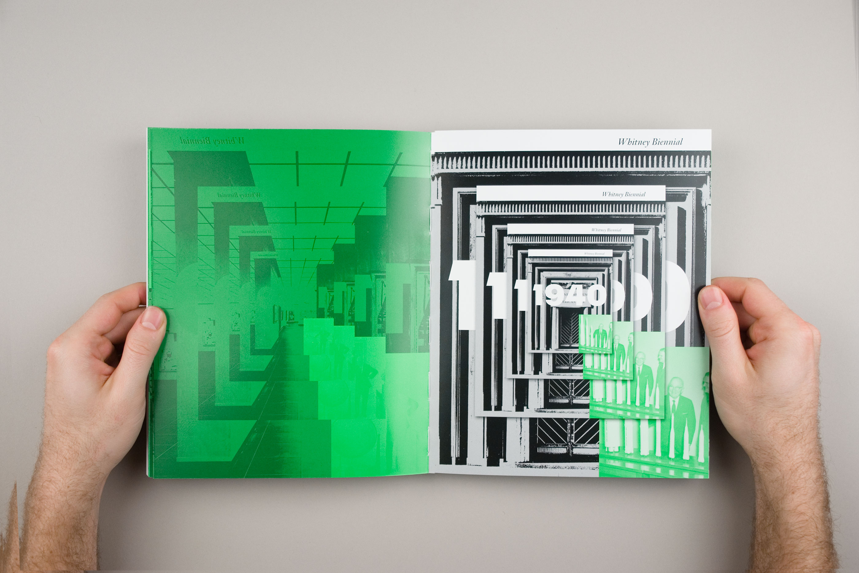 The design of the 2010 Whitney Biennial catalogue builds upon the history and logic of the exhibition series, in which a set of related frameworks is periodically applied as a means of representing recent contemporary American art.