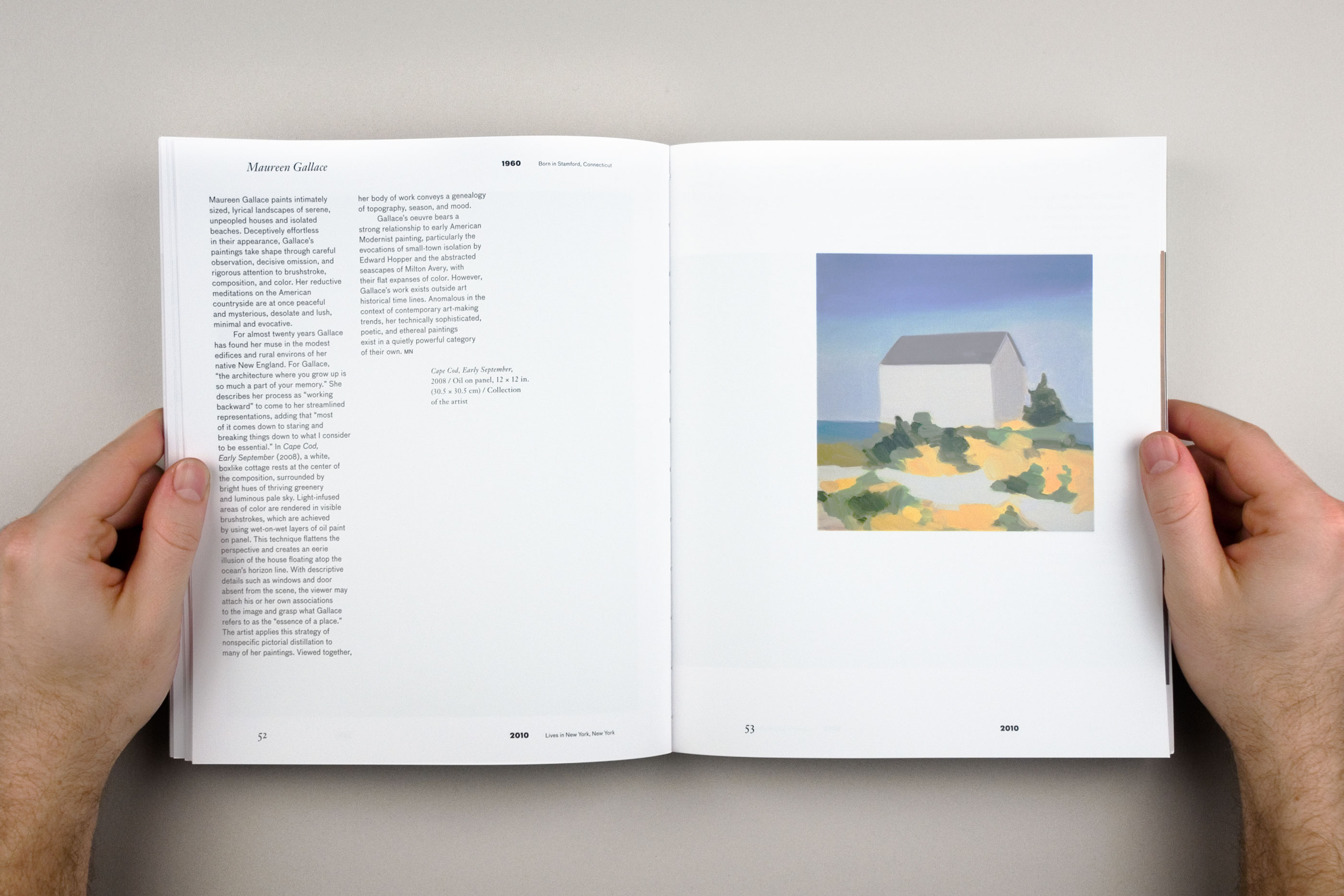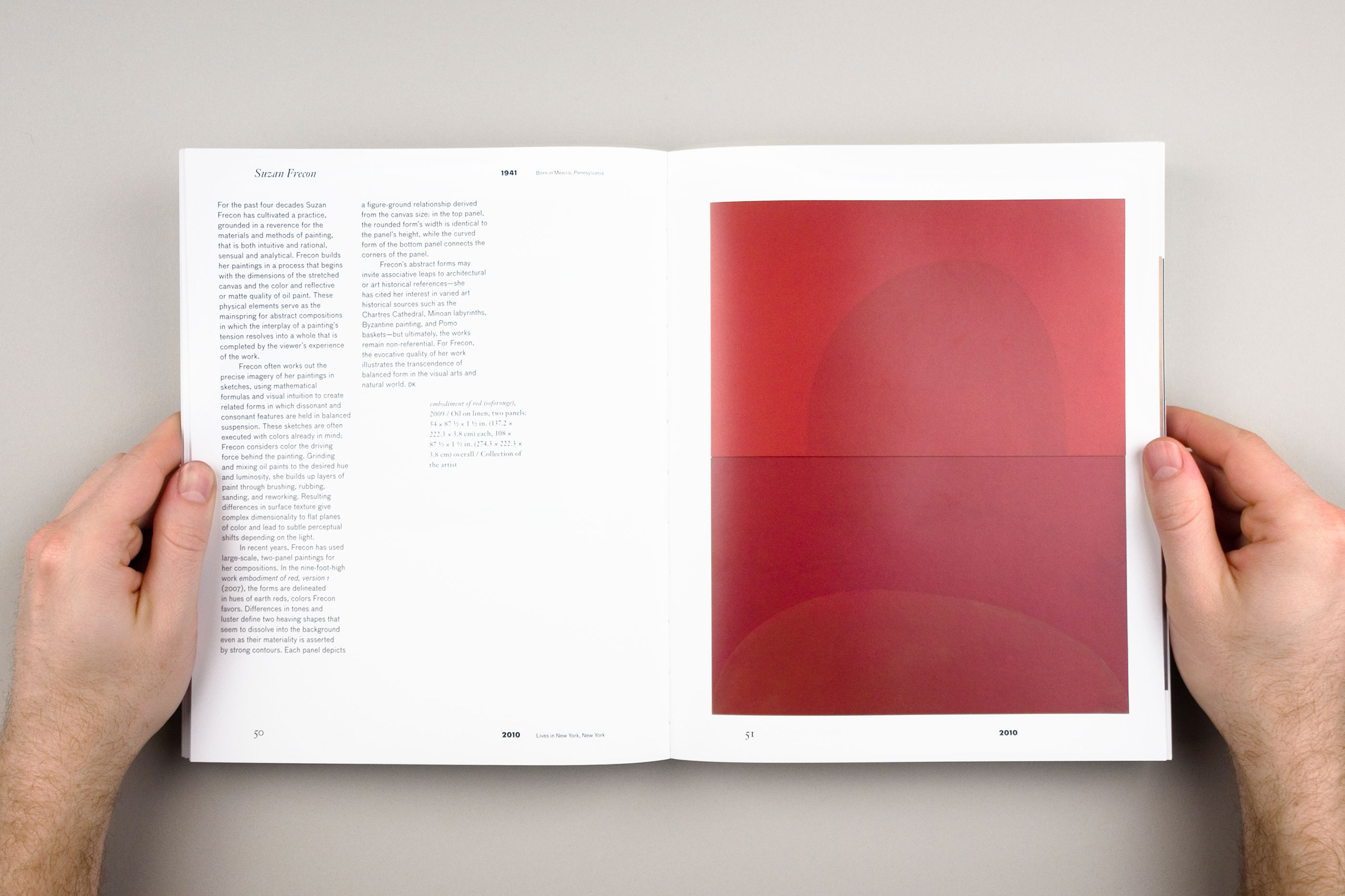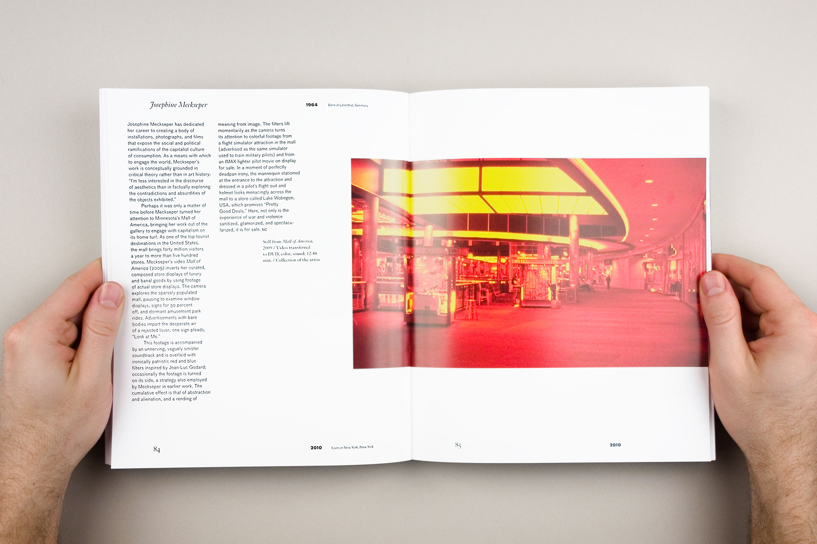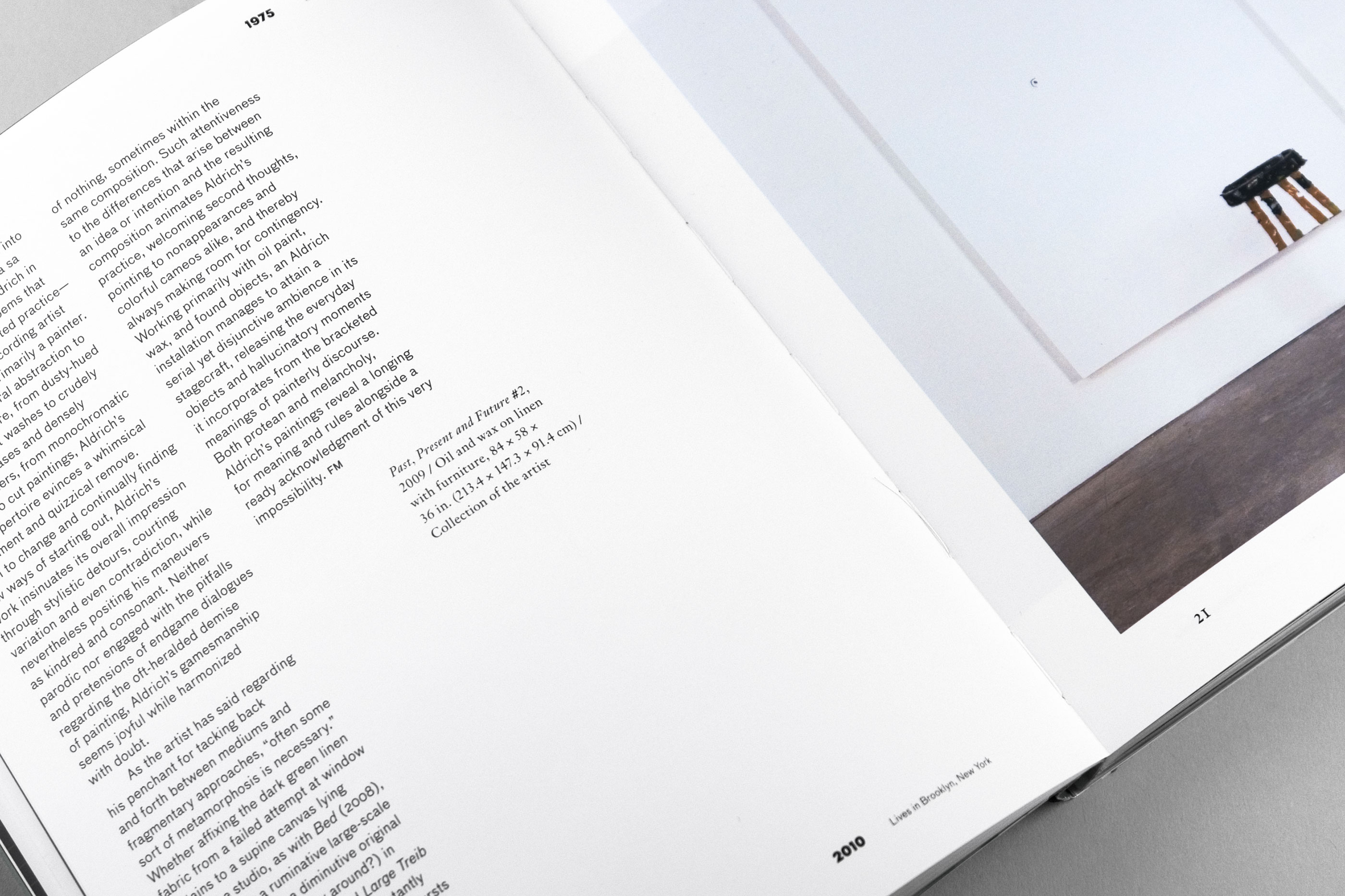 The design of the 2010 Whitney Biennial catalogue builds upon the history and logic of the exhibition series, in which a set of related frameworks is periodically applied as a means of representing recent contemporary American art.