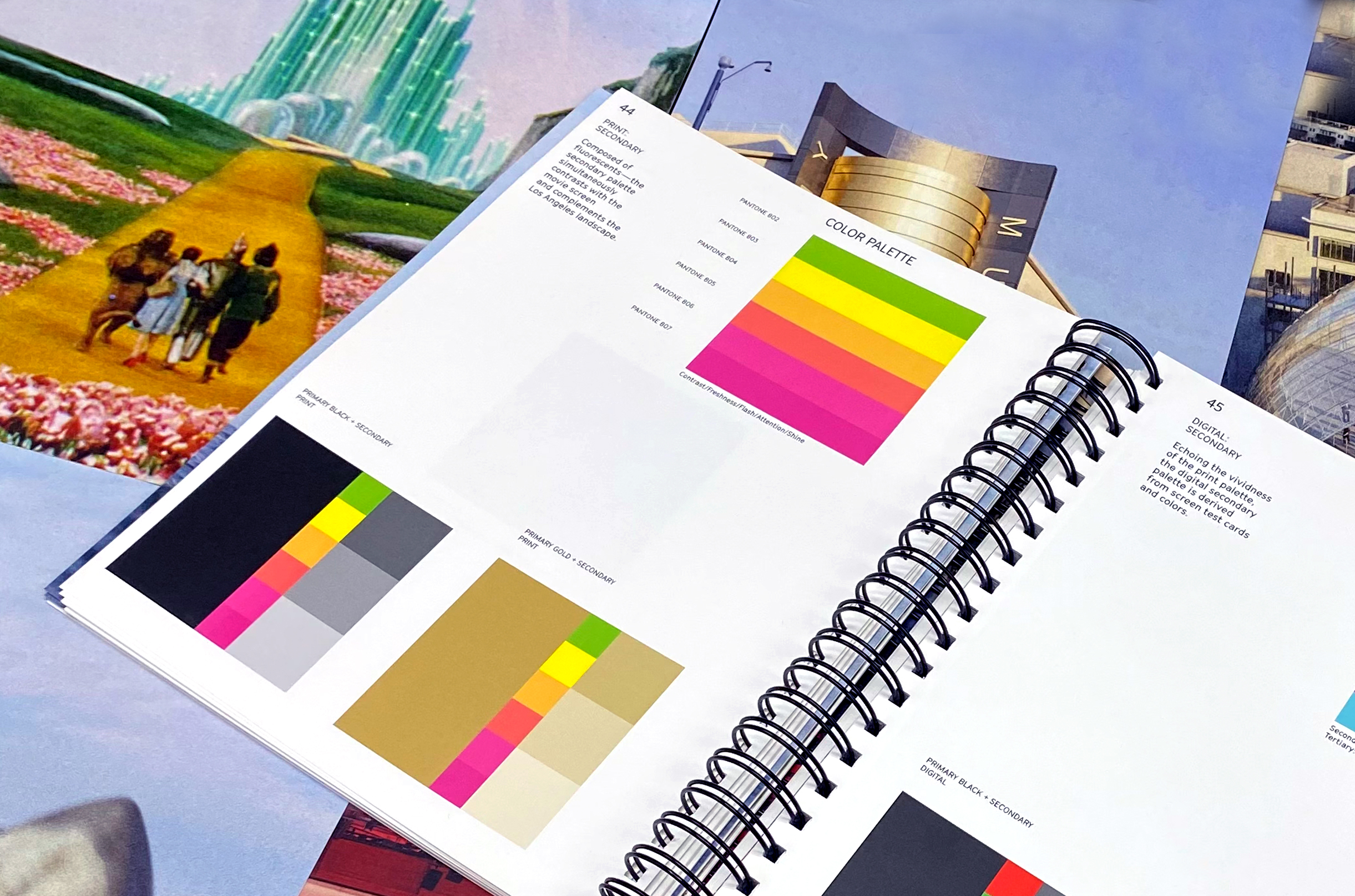 IN-FO.CO developed a comprehensive set of brand guidelines for the new Academy Museum of Motion Pictures in Los Angeles. Covering print collateral, environmental graphics, posters, motion graphics, maps, and digital signage, the extensive suite of applications, templates, and refreshed color palette embraces the bold new role of the first-ever museum dedicated to the art and science of movies. The uniquely faceted typeface GT Cinetype—based on a historical design for early cinema subtitling machines—is used throughout, in a subtle nod to the technical underpinnings that enable movie magic.