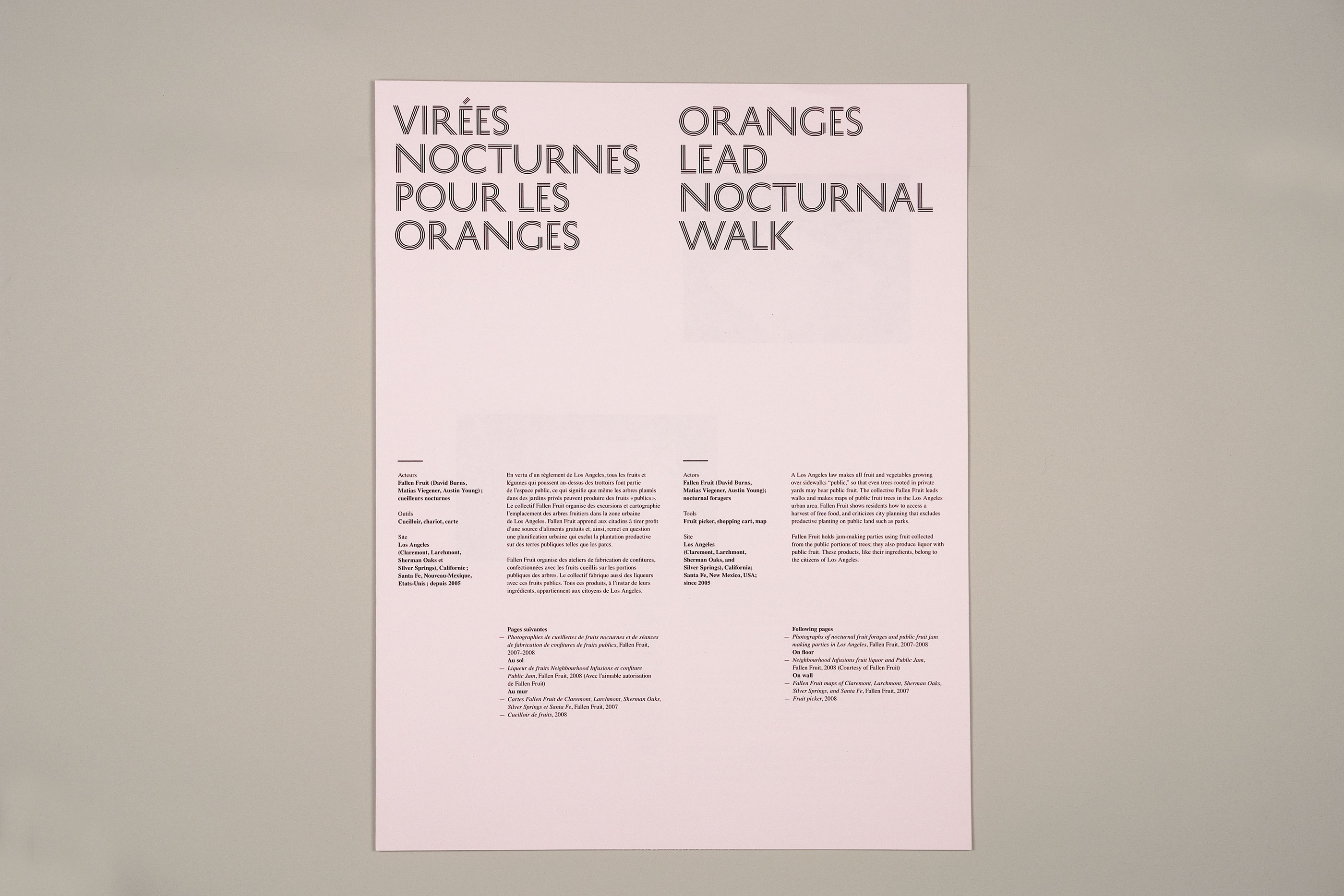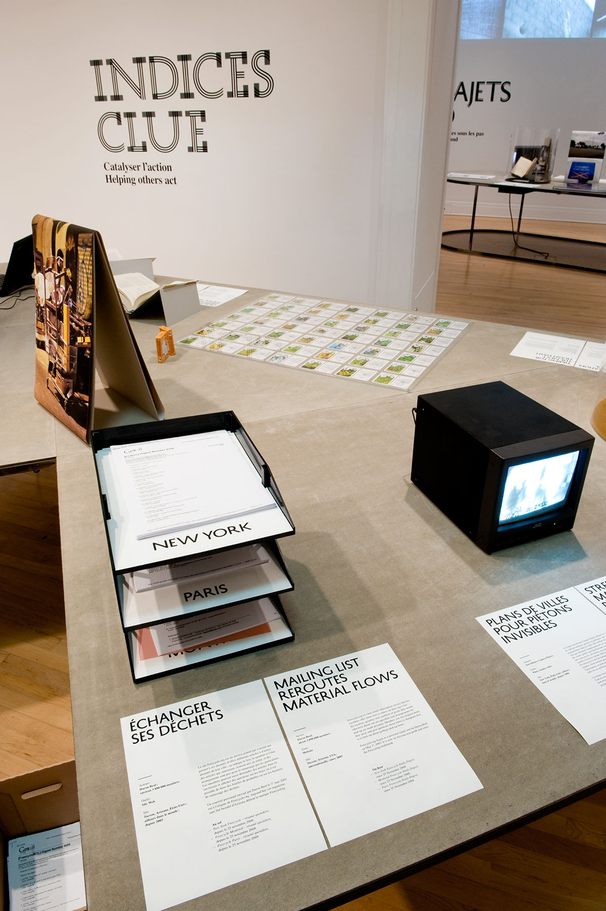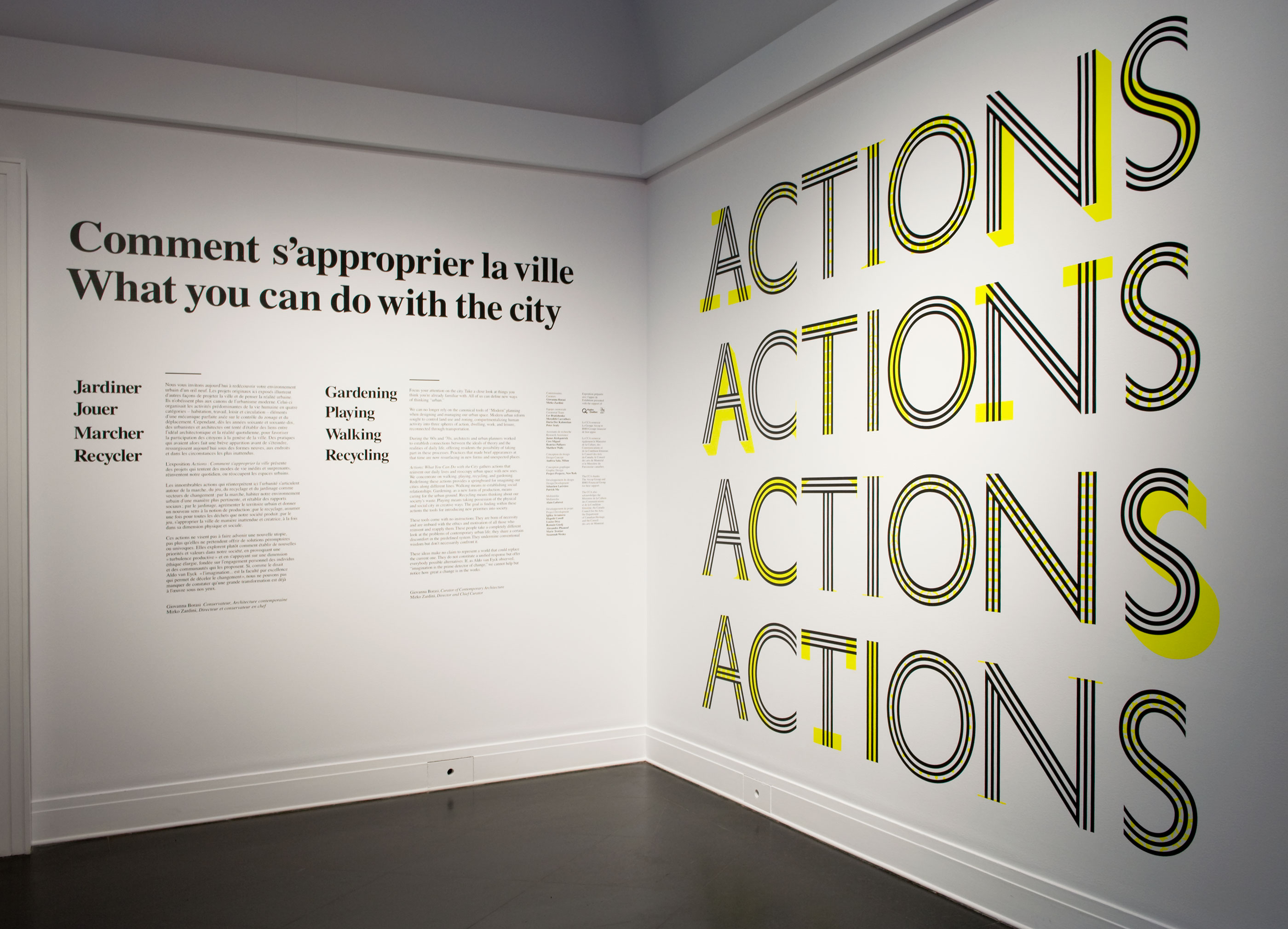 Actions, an exhibition at the Canadian Centre for Architecture in Montreal, explores how everyday human efforts can instigate positive change in contemporary cities. Activities such as gardening, recycling, playing, and walking are pushed beyond their usual definition by the 99 international architects, artists, and collectives featured in the exhibition. These experimental interactions with the urban environment show the potential for new forms of participation by city residents. The exhibition itself was designed in collaboration with the CCA, which includes a large number of print pieces intended to provide a material form for documentation of ephemeral urban activities. The exhibition travelled to the Graham Foundation in Chicago in 2009 and the X Bienal de Arquitetura de São Paulo in 2013.