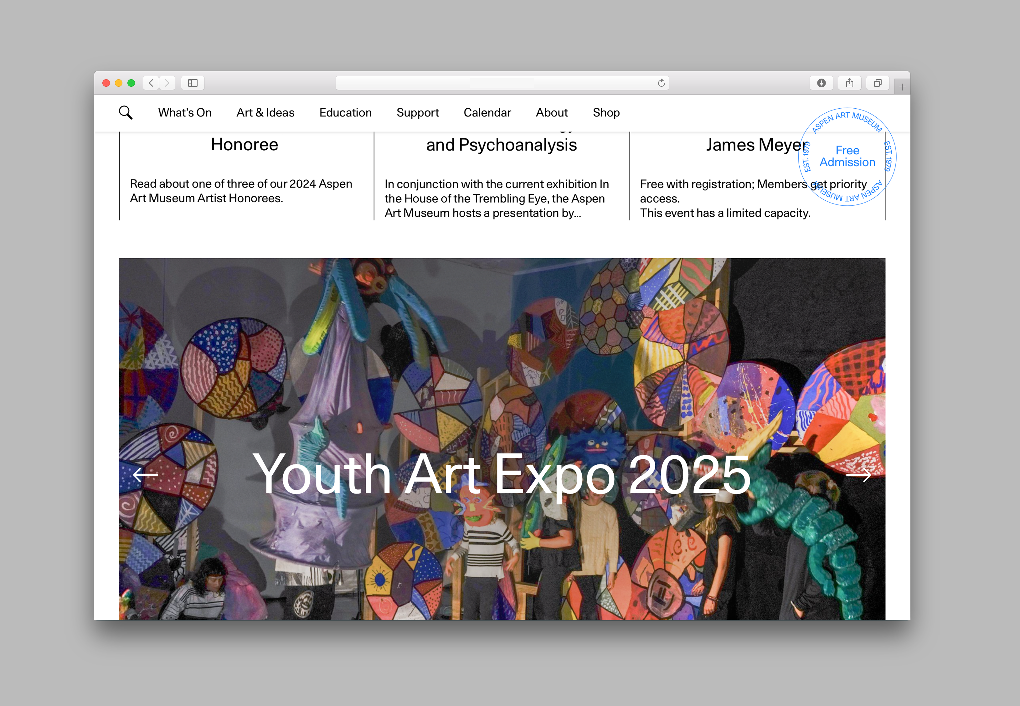 Aspen Art Museum was established at mid-century as a center for ideas and the visual arts. IN-FO.CO’s visual identity honors Aspen’s important contributions to modernism through the consistent use of Unica 77, while also responding to the contemporary architecture of the museum (designed by Shigeru Ban) through it’s use at a large, approachable scale. The system creates space for reflection and experimentation while nodding to the distinct mountain air and snowy landscape of Aspen through generous use of white space.