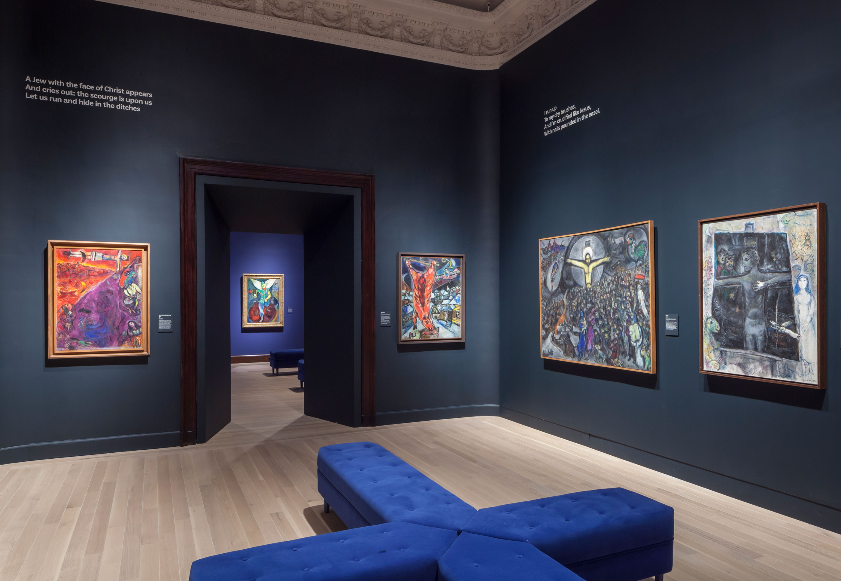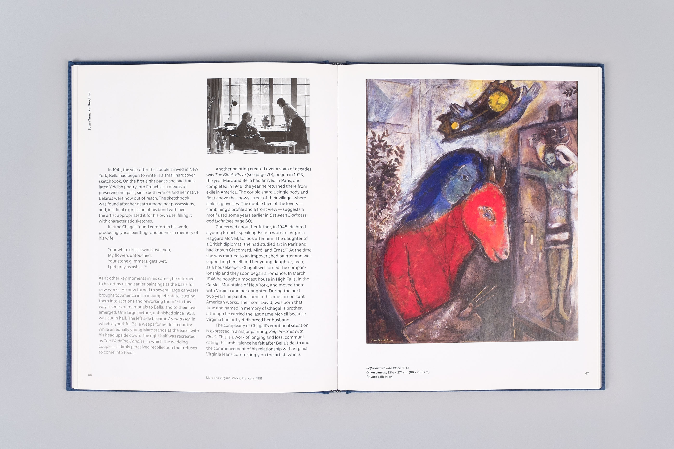 Chagall: Love, War and Exile, organized by Susan Tumarkin Goodman at The Jewish Museum, New York, examined Chagall’s work produced during his exile in Paris. The exhibition (with exhibition design by Galia Solomonoff) provided a fresh look at an underexamined period of his career. Fragments of Chagall’s poetry accompanied the artworks, which were hung in galleries each painted a different shade of blue, creating a new textual lens through which to read the paintings’ development over time. In the catalogue this rarely seen poetry by Chagall is printed on kraft paper and interspersed throughout the book, providing a warmth that complements the bold color of the work.