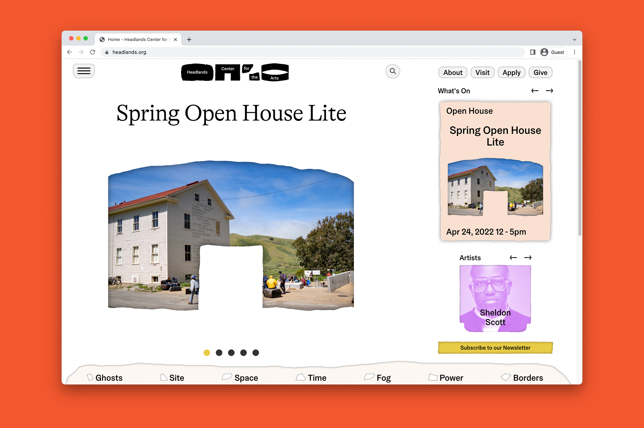 The new identity and website for Headlands Center for the Arts captures the uniquely immersive experience of visiting Headlands, an organization focused on fostering innovative contemporary art and artists, sited within Marin County.