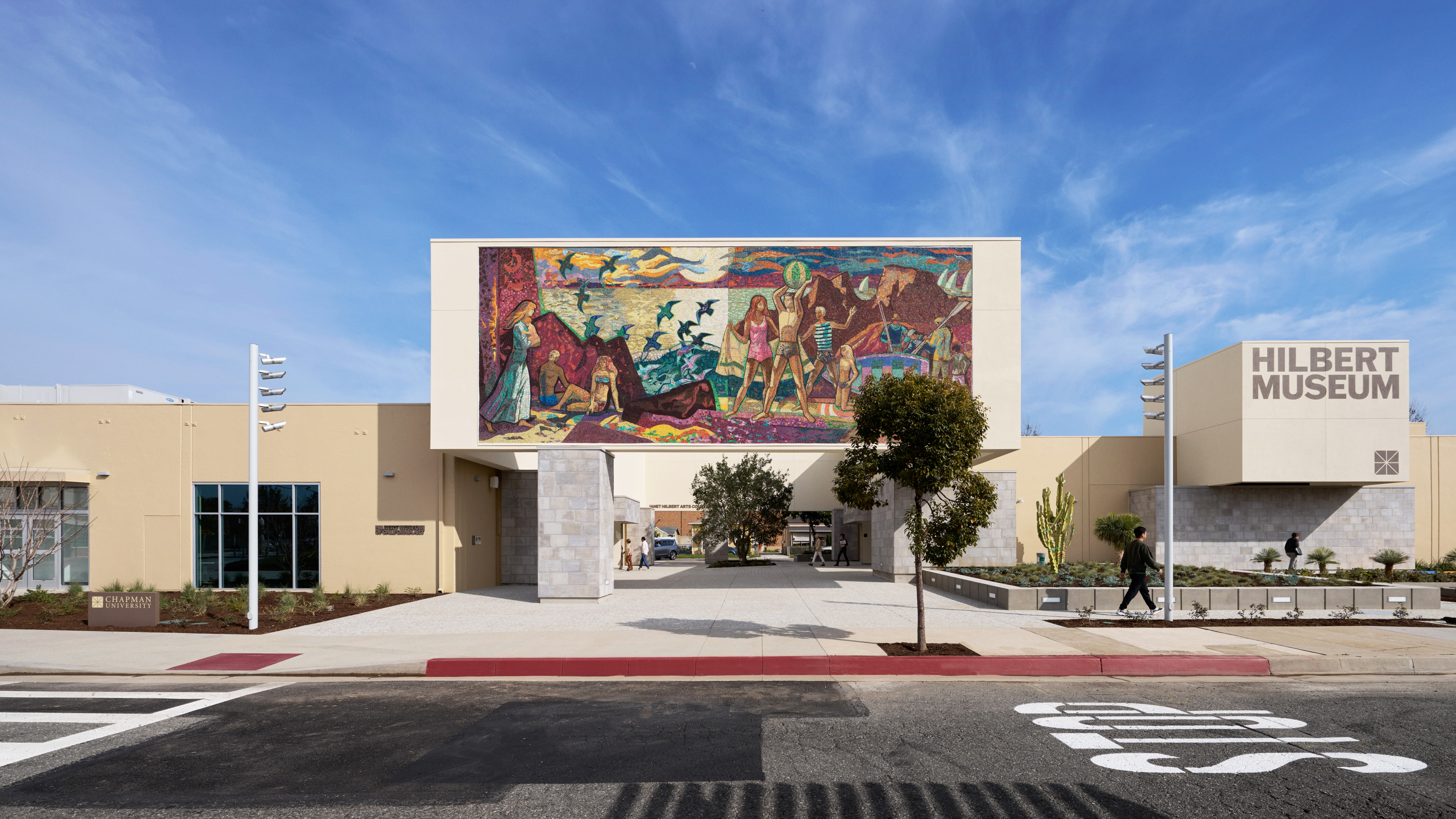 The Hilbert Museum of California Art, located at the Southwest corner of the Chapman University campus in Orange, California, was renovated by Johnston Marklee to unite the existing museum, an adaptive reuse of an old warehouse, with an adjacent industrial building previously used as a dance studio, by adding a new open-air courtyard.