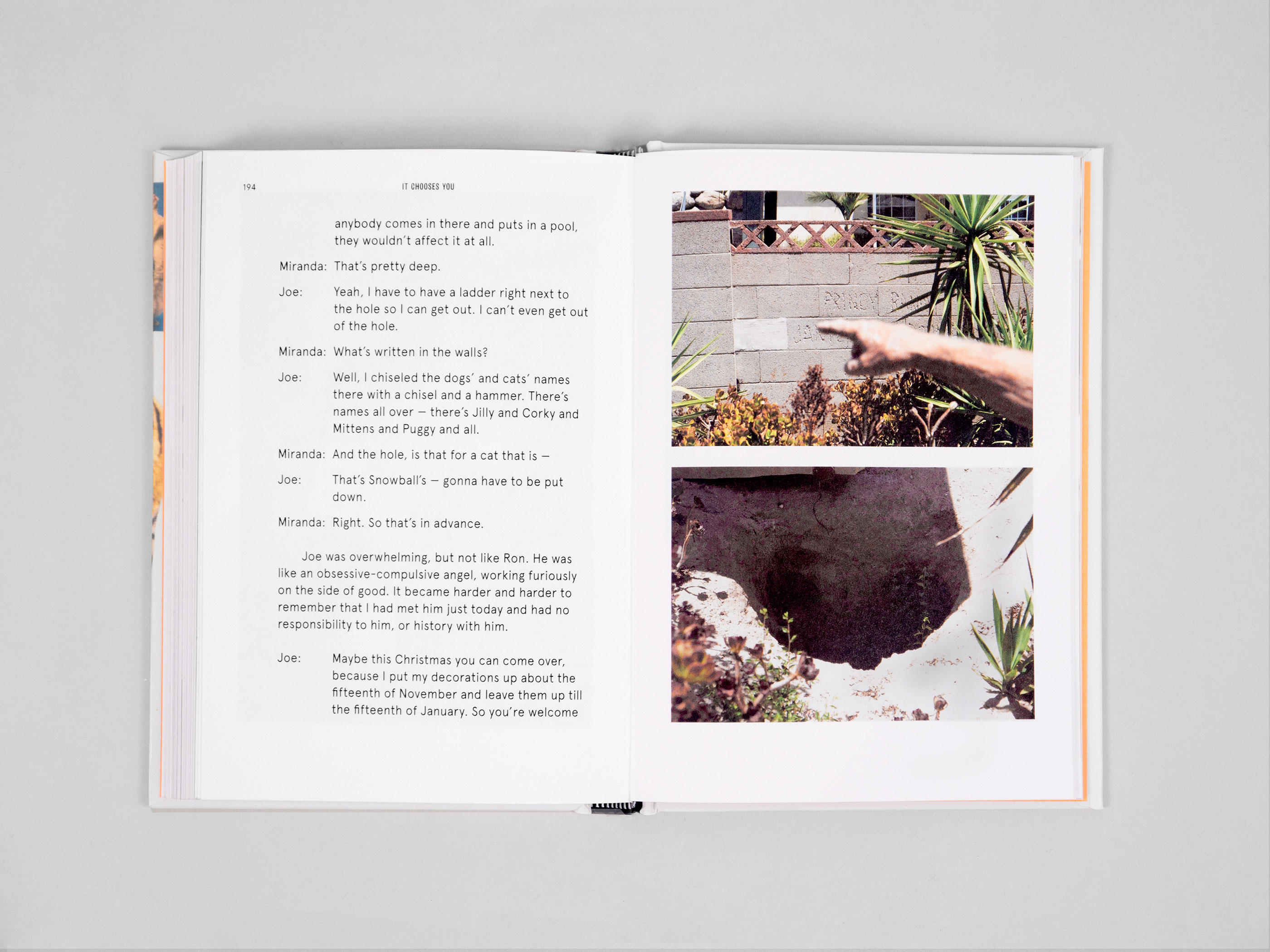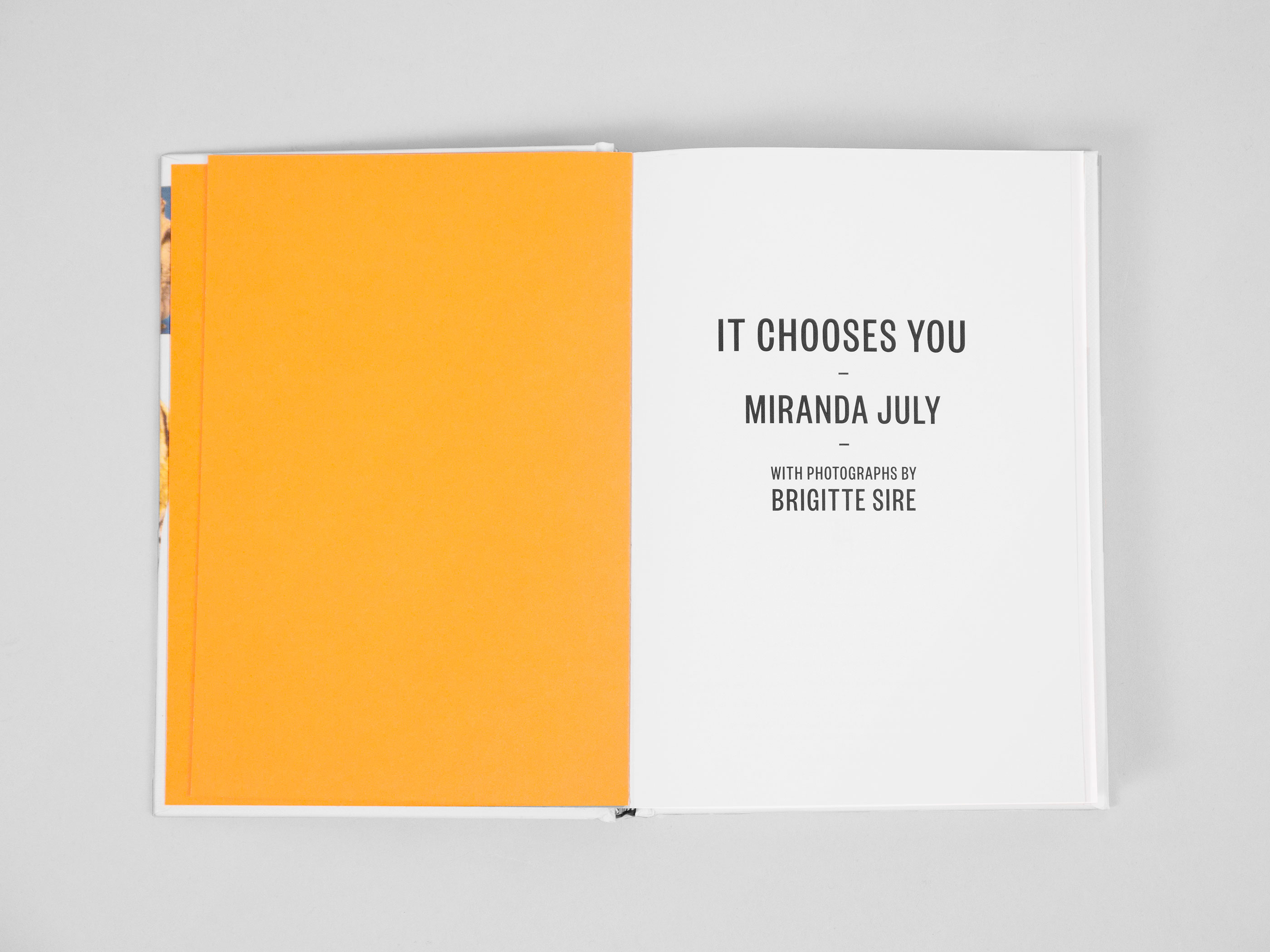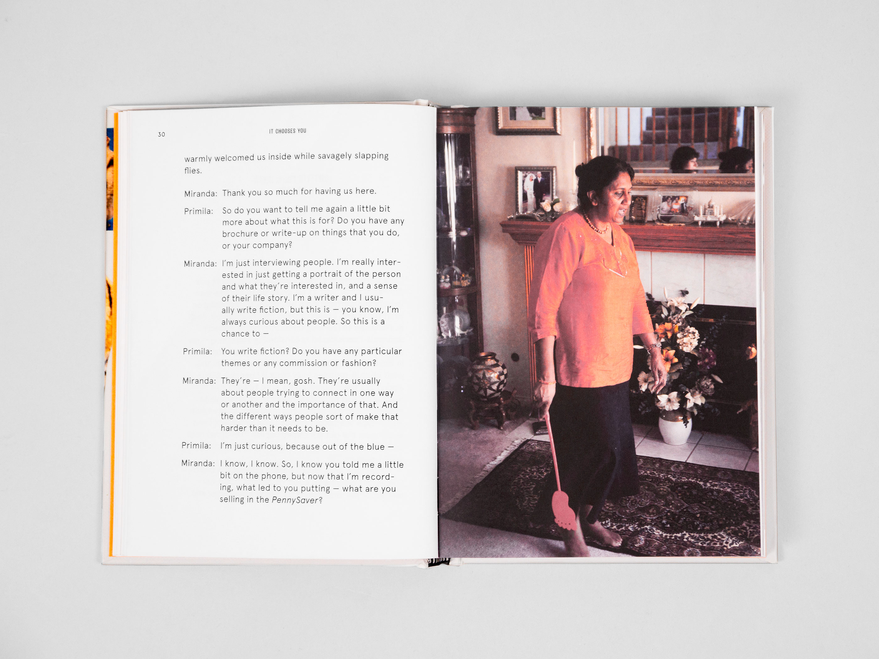 It Chooses You, published by McSweeney’s, is an account of how Miranda July spent her time while directly and indirectly working on the screenplay for her second feature film, The Future. Teaming up with photographer Brigitte Sire, July meets and interviews a range of Los Angeles residents found via sellers’ ads in the classifieds booklet PennySaver. Adam Michaels designed the book’s cover and interior template.