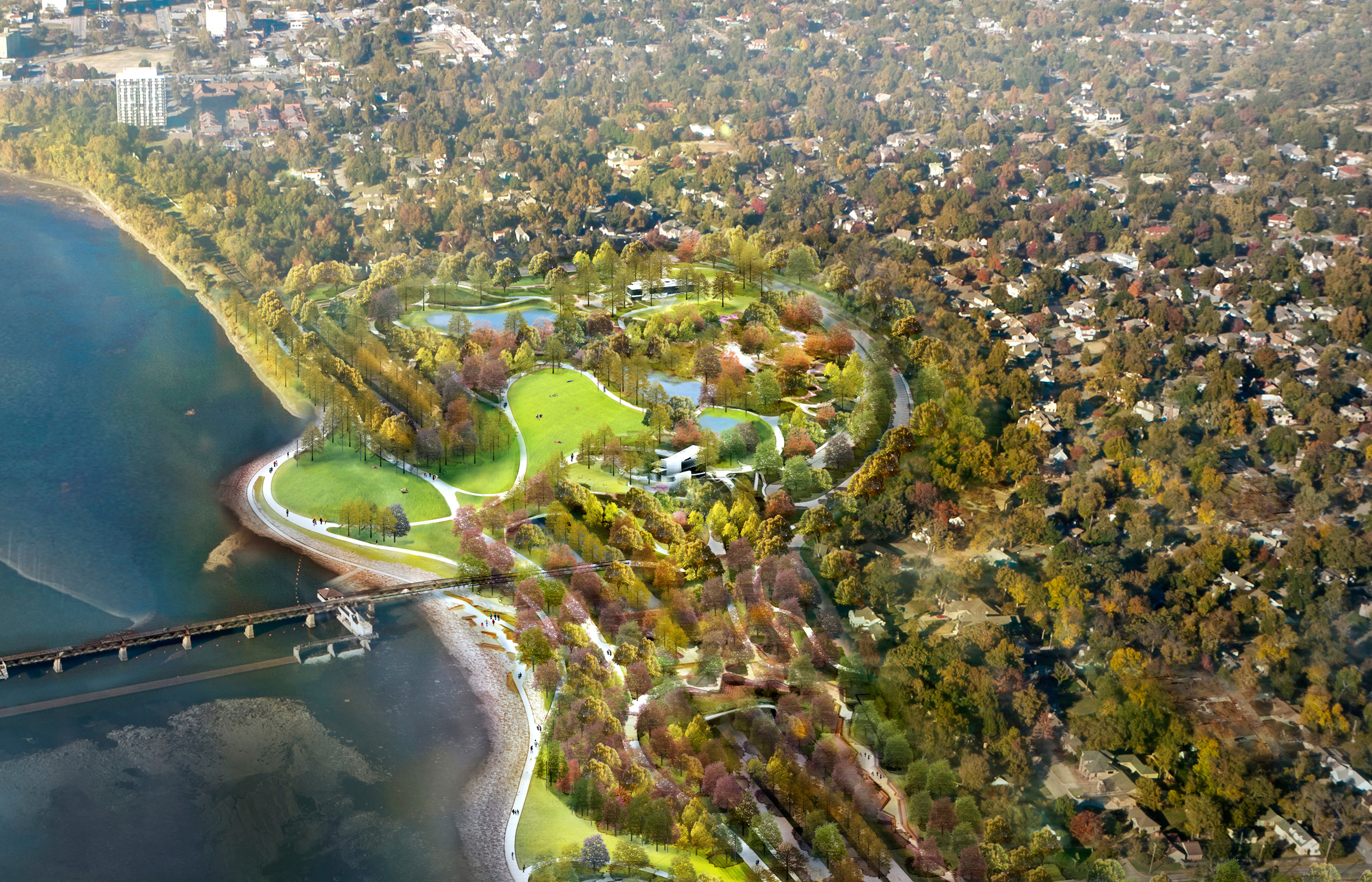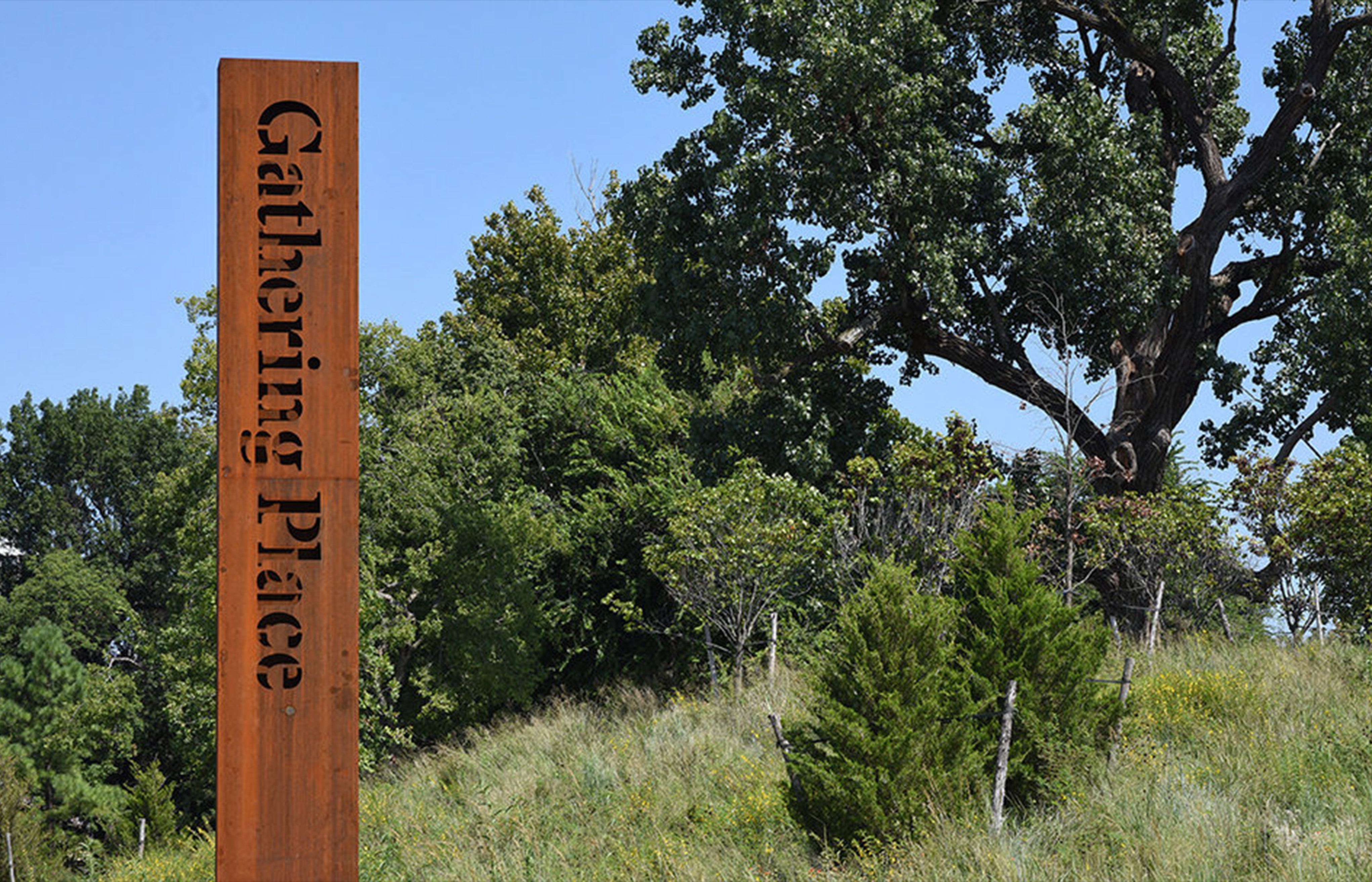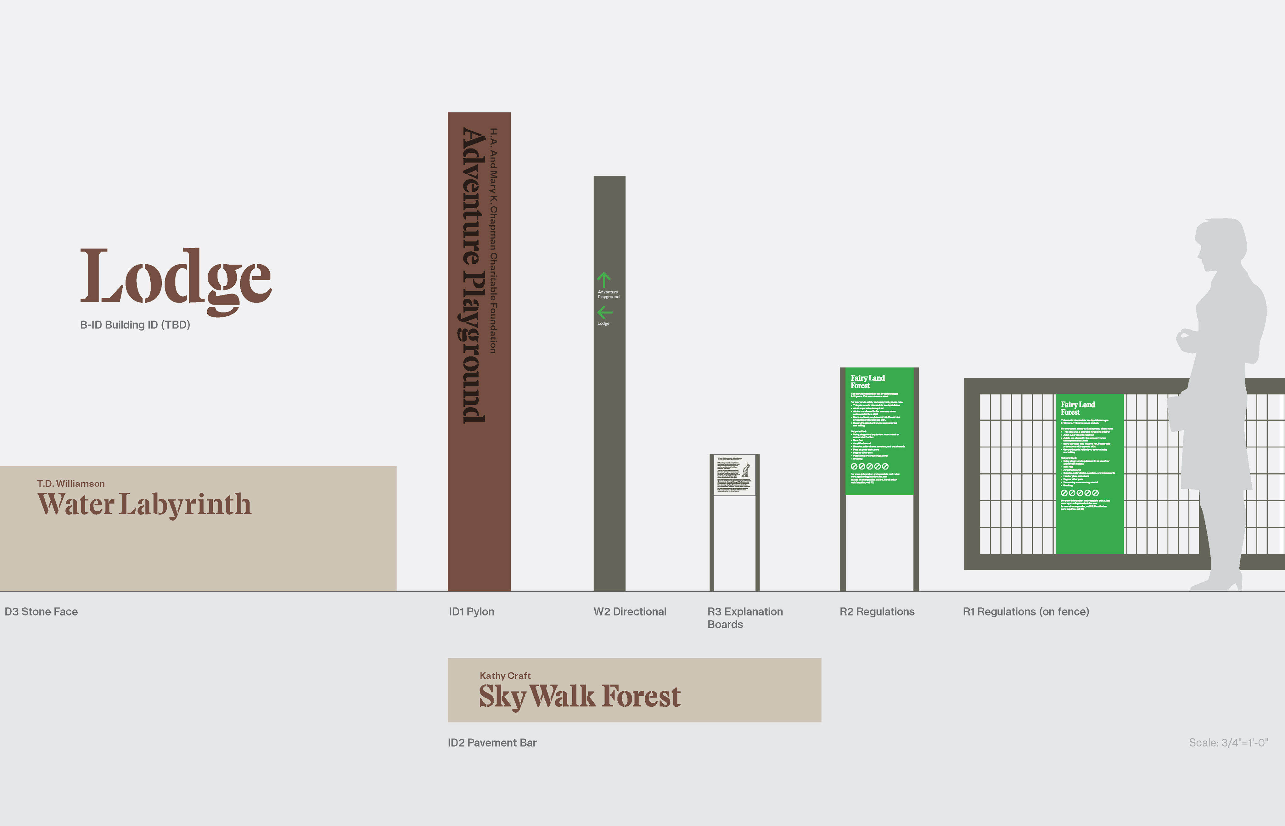Developed in close collaboration with Michael Van Valkenburg Associates, the signage system for this new 100-acre riverfront park and civic commons features highlight colors that reflect the natural sandstone of the Oklahoma region.
