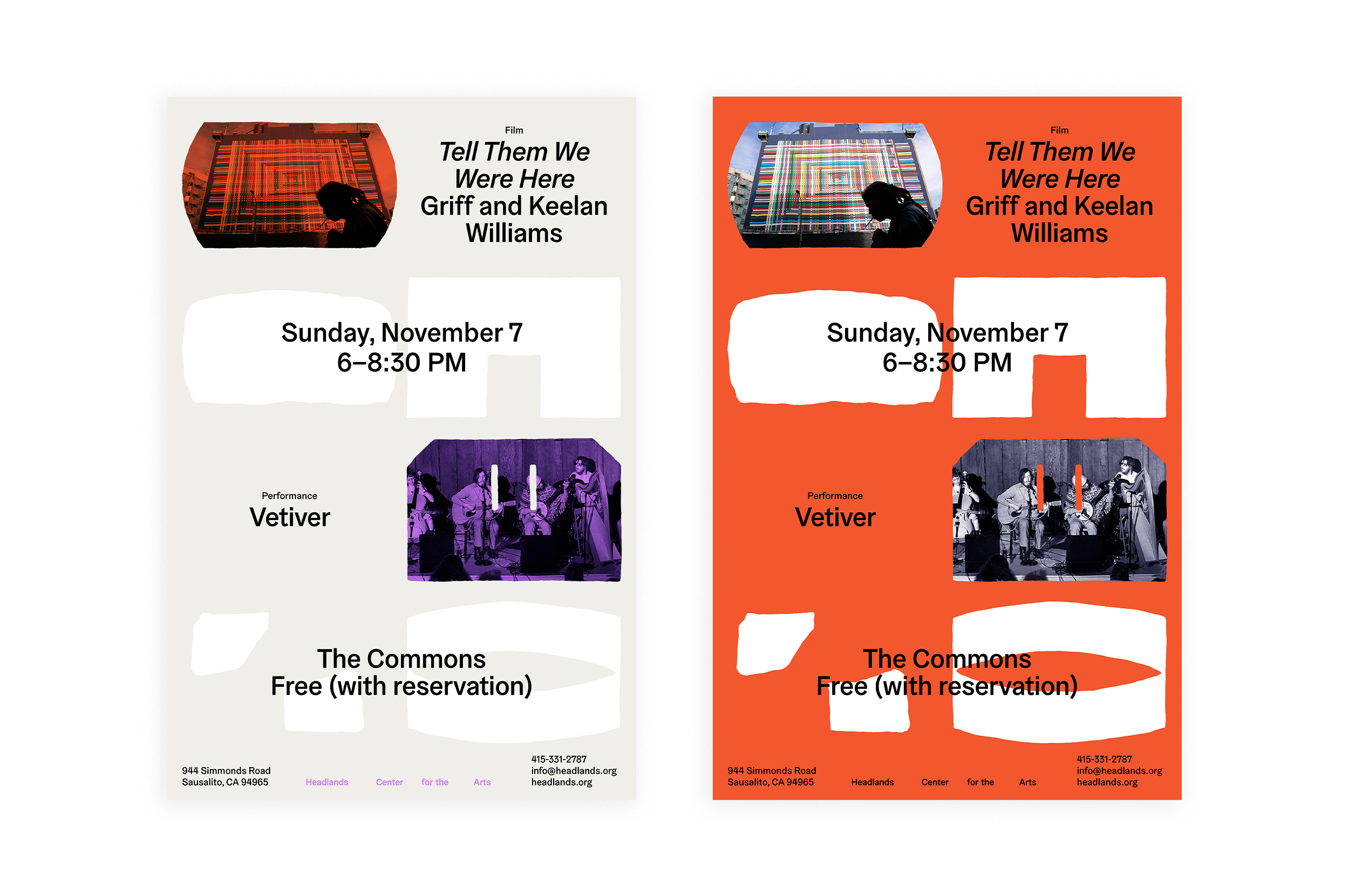 The new identity system is built around a specially designed set of glyphs that will expand over time. Inspired by the landscape of the Headlands campus, the glyphs function as both symbols and containers, forming a unique alphabet that represents the diversity of ideas developed onsite, and frames content and media, allowing these elements to be combined in different ways to tell a larger narrative.