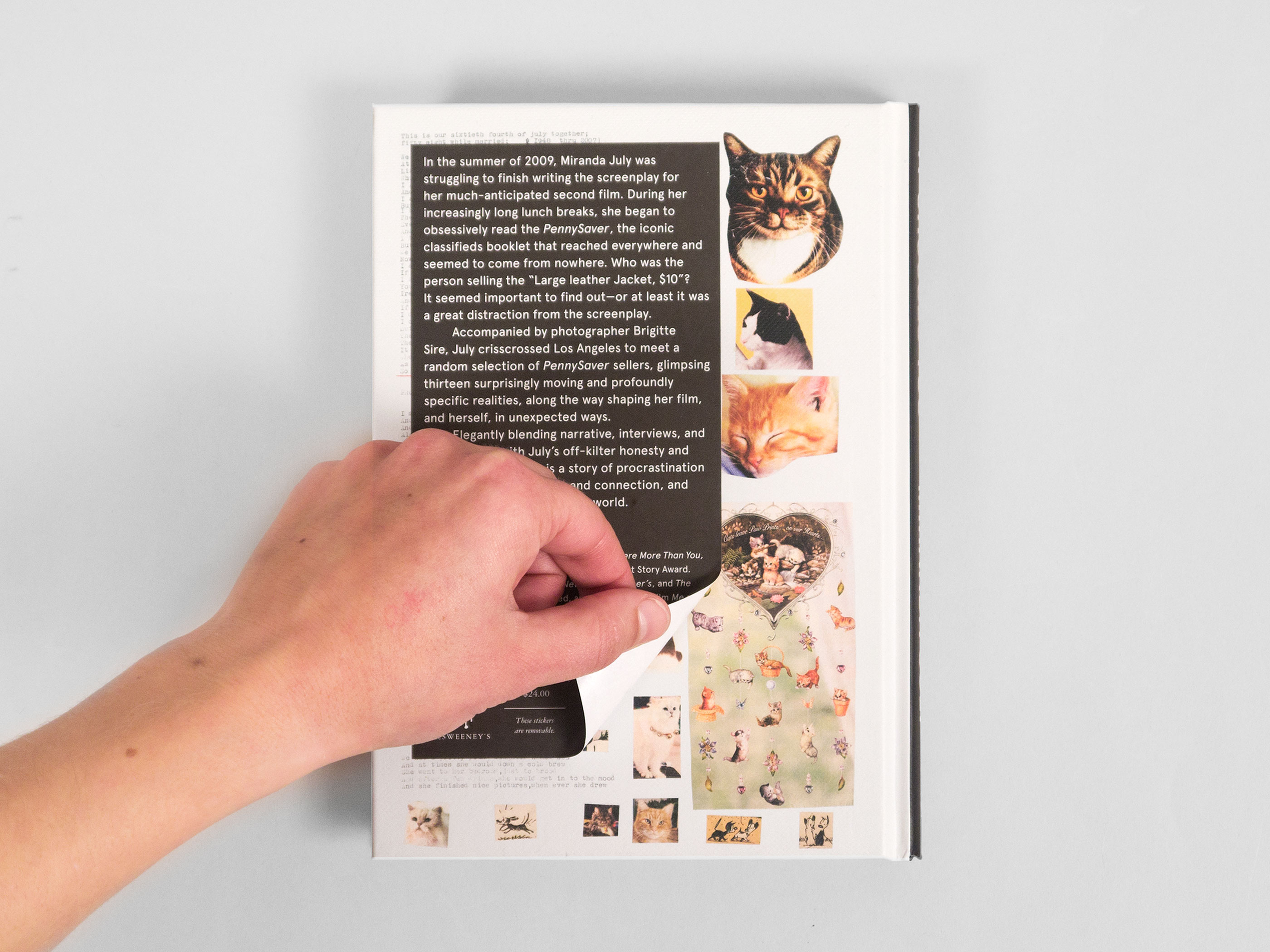 It Chooses You, published by McSweeney’s, is an account of how Miranda July spent her time while directly and indirectly working on the screenplay for her second feature film, The Future. Teaming up with photographer Brigitte Sire, July meets and interviews a range of Los Angeles residents found via sellers’ ads in the classifieds booklet PennySaver. Adam Michaels designed the book’s cover and interior template.