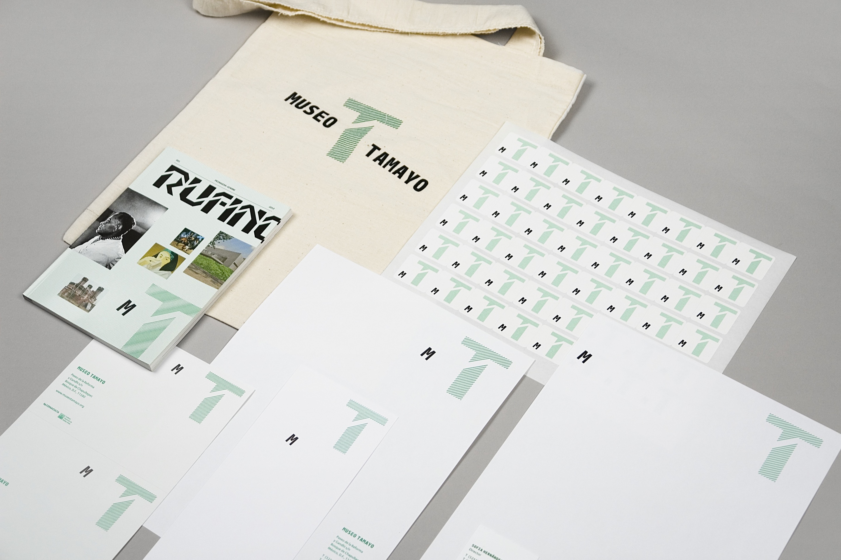 Located in Mexico City, the Museo Tamayo is a contemporary art museum that also houses at its core a collection of works by Mexican artist Rufino Tamayo. Under its new director Sofía Hernández Chong Cuy, the Museo Tamayo has refocused its program to present a wider range of activities including programming, events, and commissioned projects. In the identity, “Museo” is signified by an angled “M” that floats within each design at different positions. The resulting identity exists in a perpetually shifting state, subverting the assumed authority of the singular, monolithic institutional identity by offering one that is responsive, dynamic, and hybrid in its place. A publication system for its in-house magazine, “Rufino,” was also developed.