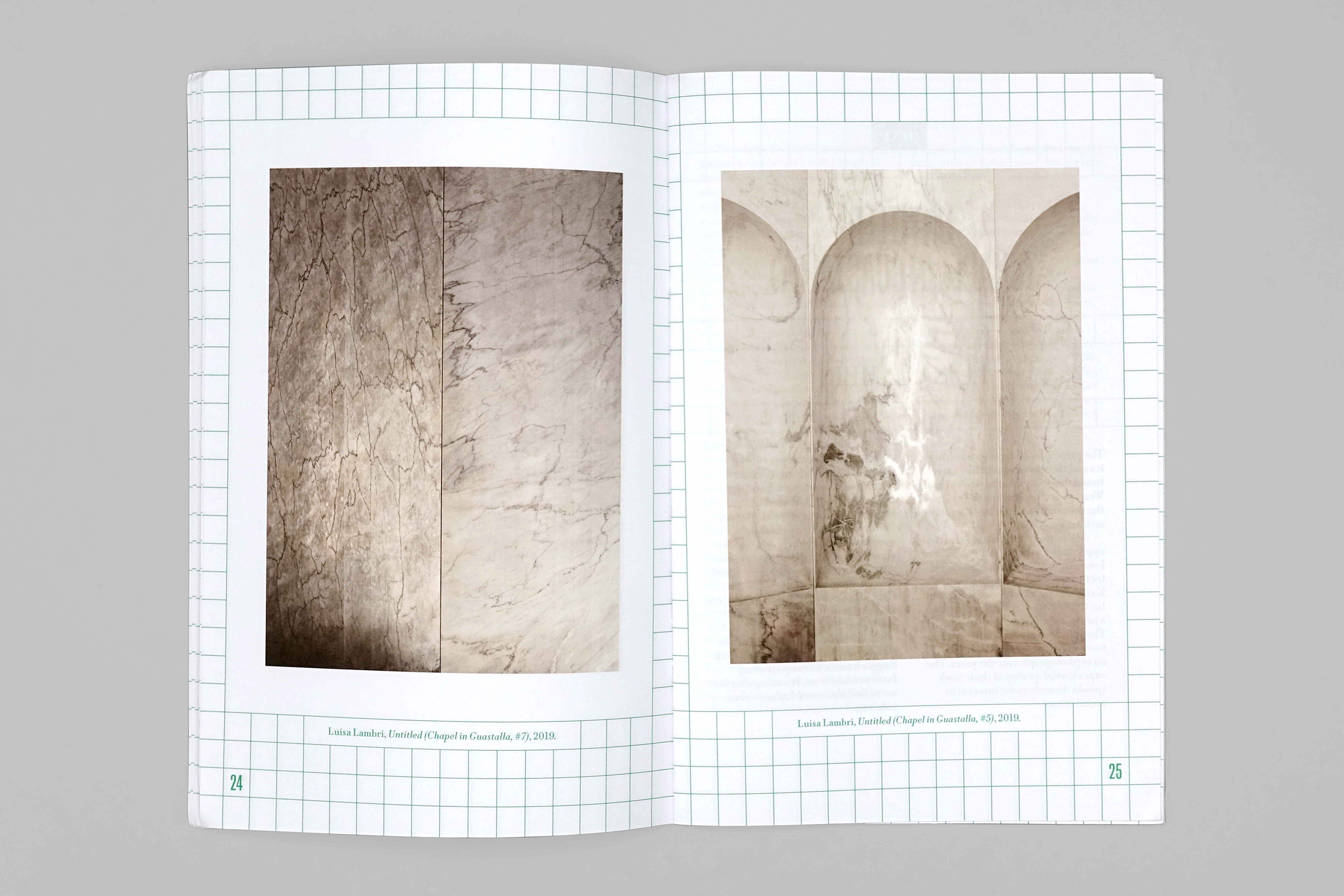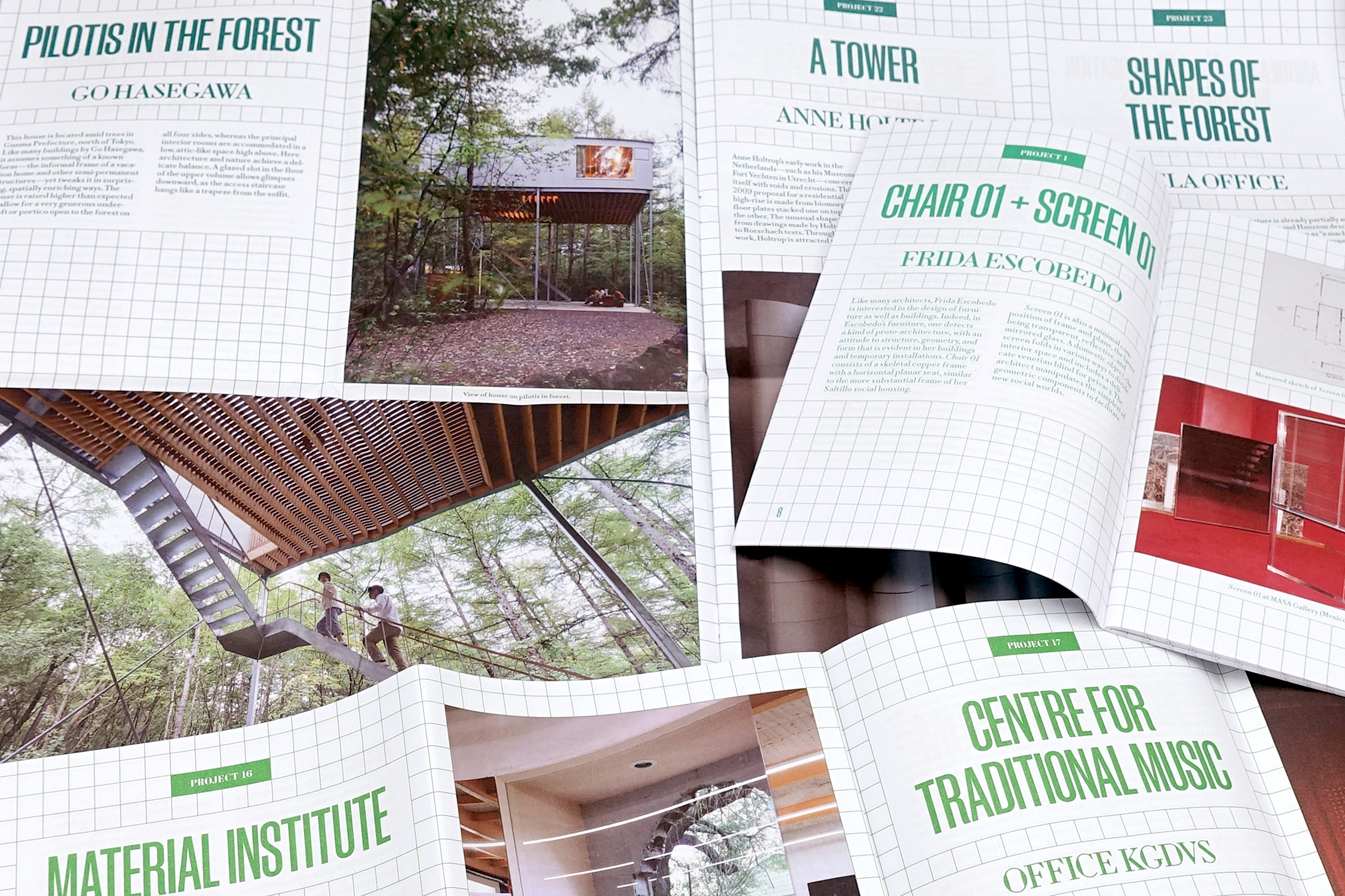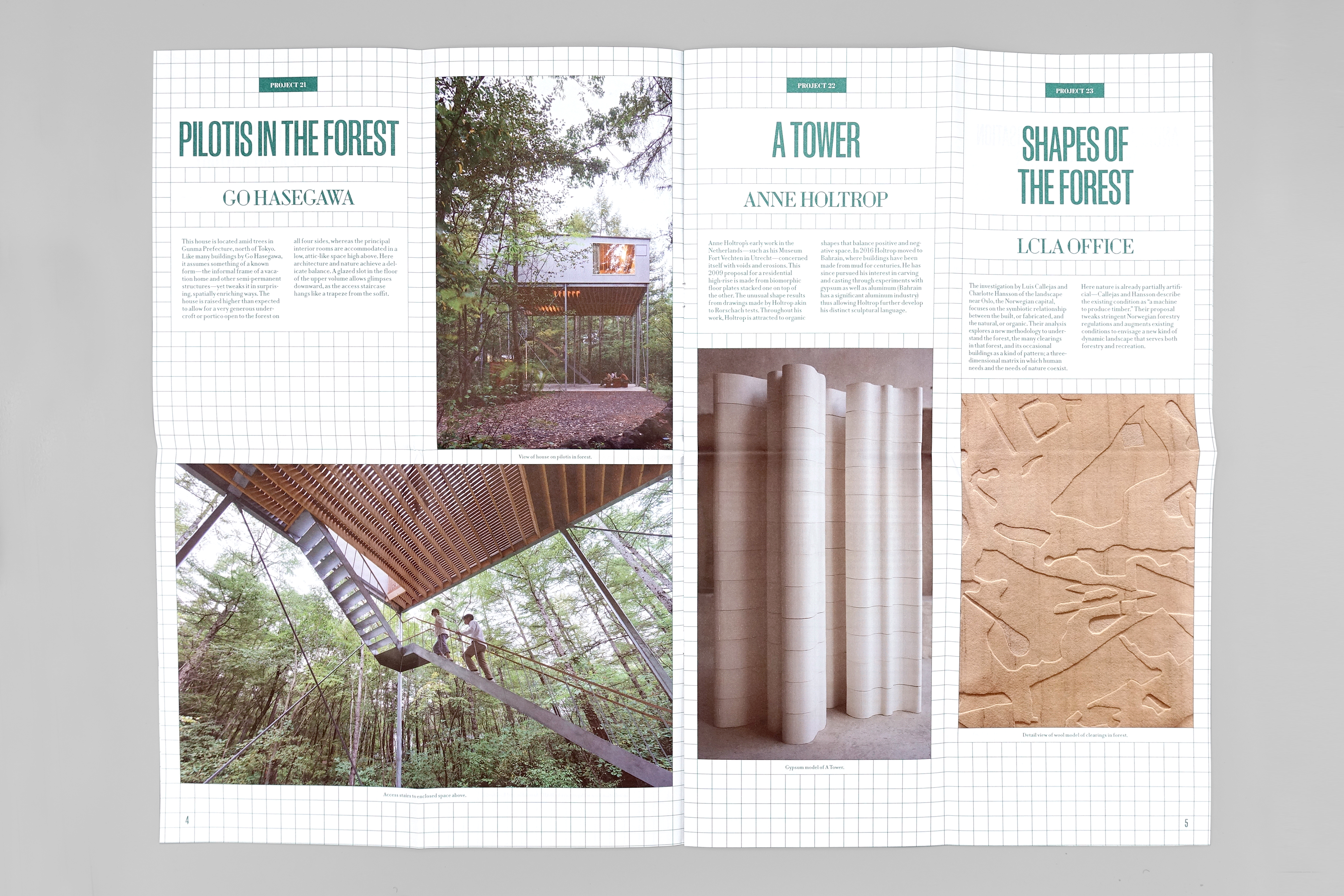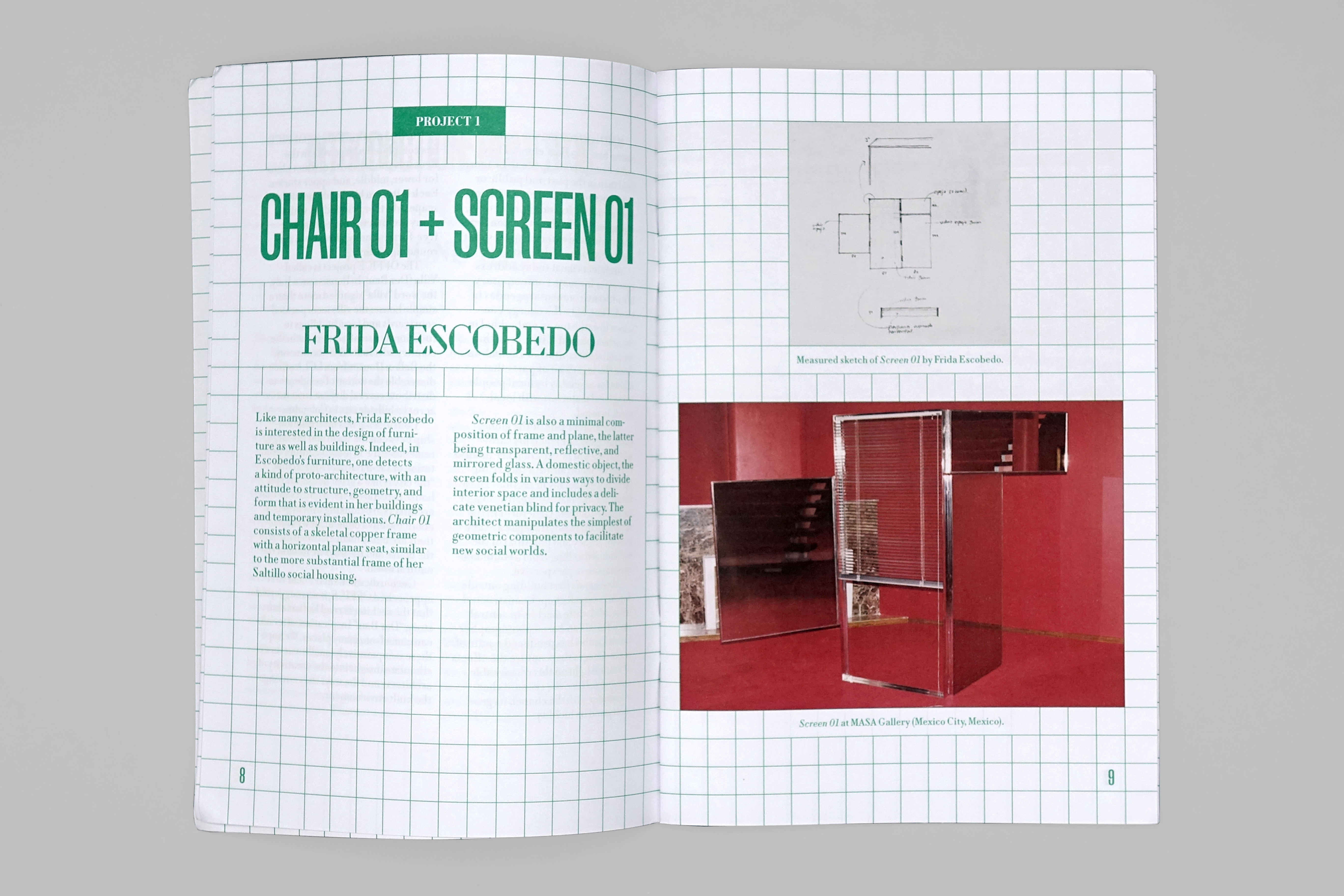 IN-FO.CO designed the exhibition graphics and exhibition guide. Based on a continuous grid system, the publication’s three volumes, each a different shade of Pantone green, are packaged in a 6 × 9 inch folder, but fold out to dramatically varied page sizes: 6 × 9 inches, 12 × 9 inches, and 12 × 18 inches.